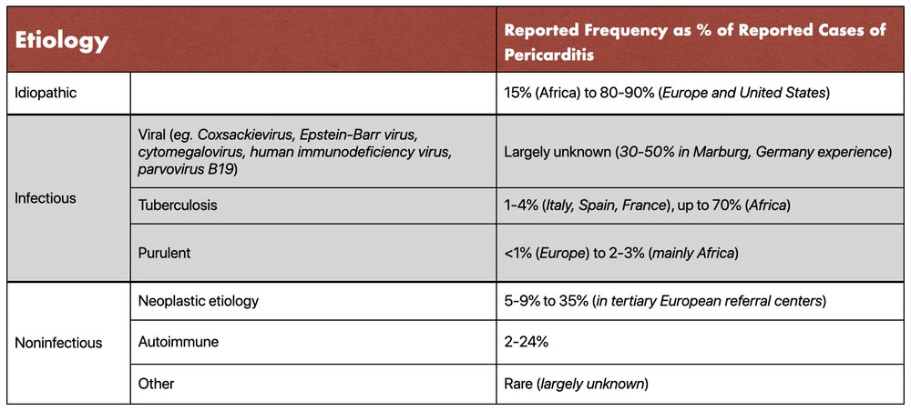 Cups To Manage Pericarditis The Journal For Nurse Practitioners from els-jbs-prod-cdn.jbs.elsevierhealth.com The cause of pericarditis is often hard to determine. The chest pain occurs when the irritated layers of the pericardium rub against each other. Sometimes, doctors can't find a cause (idiopathic pericarditis). As the sac becomes stiff and unable to move properly, the scarred tissue starts to compress the heart and prevent it from functioning well. This fluid keeps the layers from rubbing as the heart moves to pump blood. Blood tests are usually done to check for signs of a heart attack, inflammation and infection. Oct 21, 2020 · pericarditis is swelling and irritation of the thin, saclike tissue surrounding your heart (pericardium). Medications to reduce the inflammation and swelling are often prescribed.
